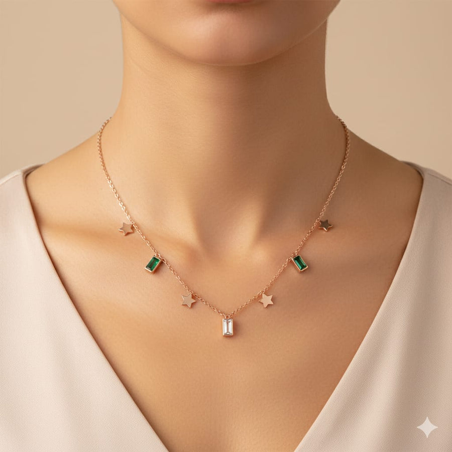 Star 18k Gold Plated Necklace for Women | Elegant Gold, Pearl & Diamond Style