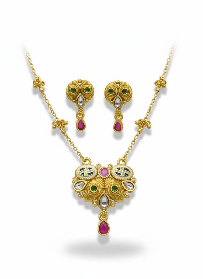 Ice Swarovski Jadtar 18K Gold-Plated Chain-Pendant | Artisanal Jewellery
